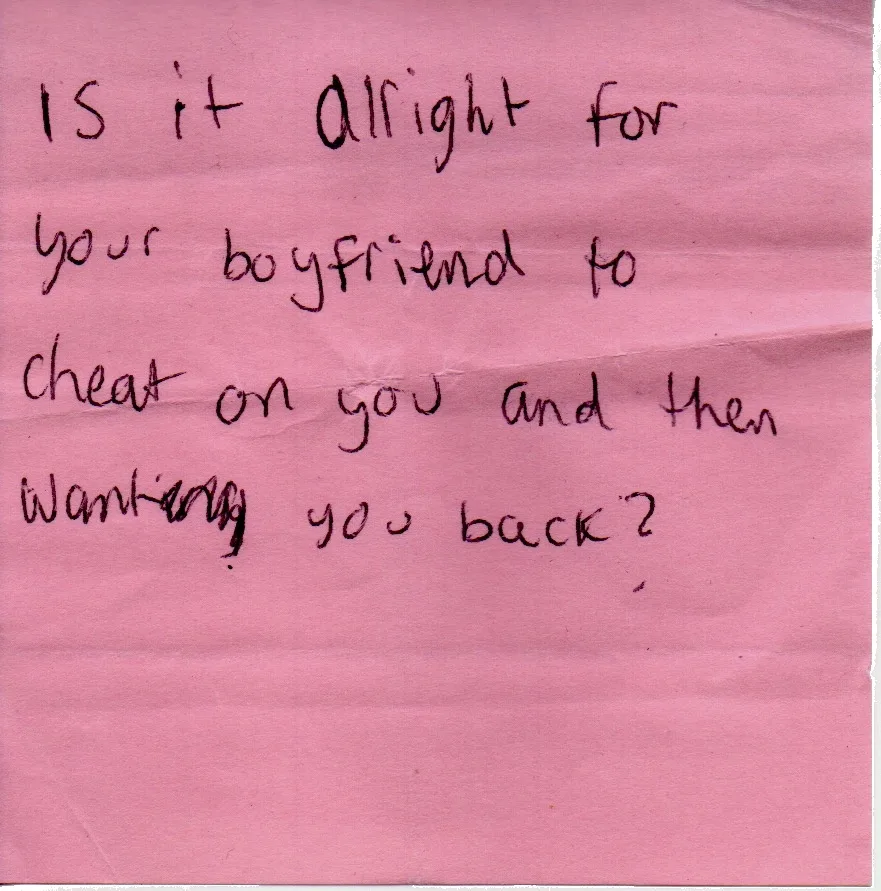 RelationshipsIs it alright for your boyfriend to cheat on you and then want you back?