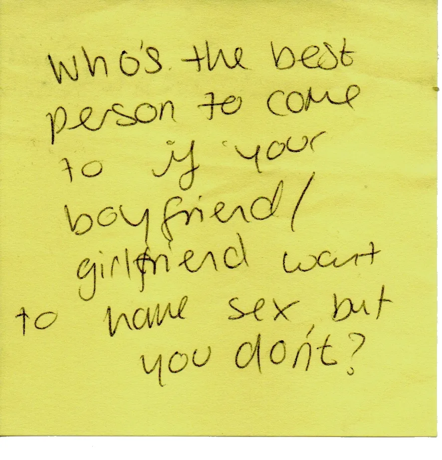 RelationshipsWho is the best person to come to if your boyfriend/girlfriend wants to have sex but you don't?
